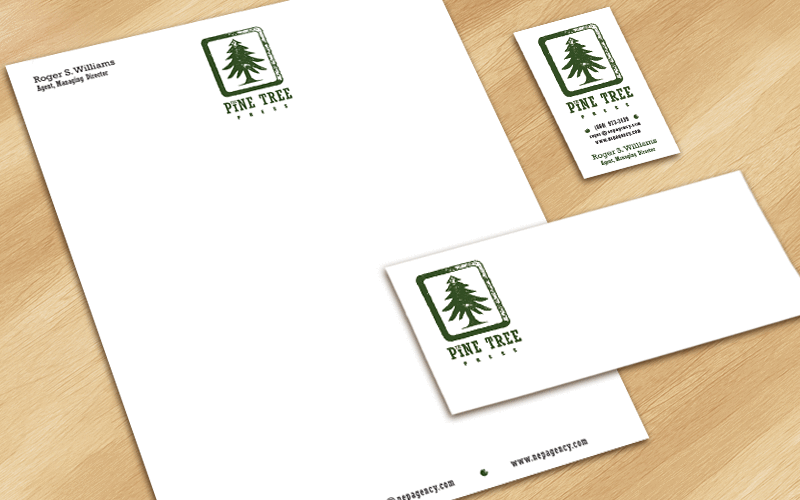 Create a logo for a publishing company using the image of a pine tree.